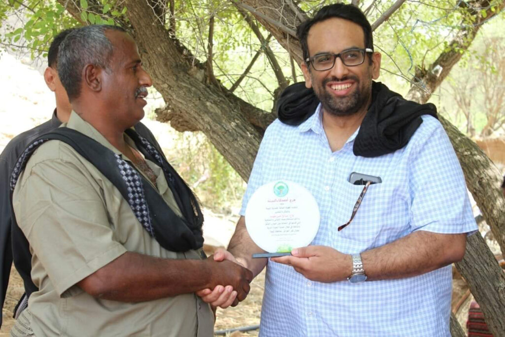 وفي نهاية اللقاء قام المهندس عمار العولقي بتكريم الناشط البيئي صالح حسن مقيده، على جهوده التي بذلها لإنقاذ حيوان الوشق، والناشط البيئي علي محمد البعسي على جهوده التي يقوم بها في مجال التوعية للحفاظ على الحيوانات البرية على مواقع التواصل الاجتماعي.